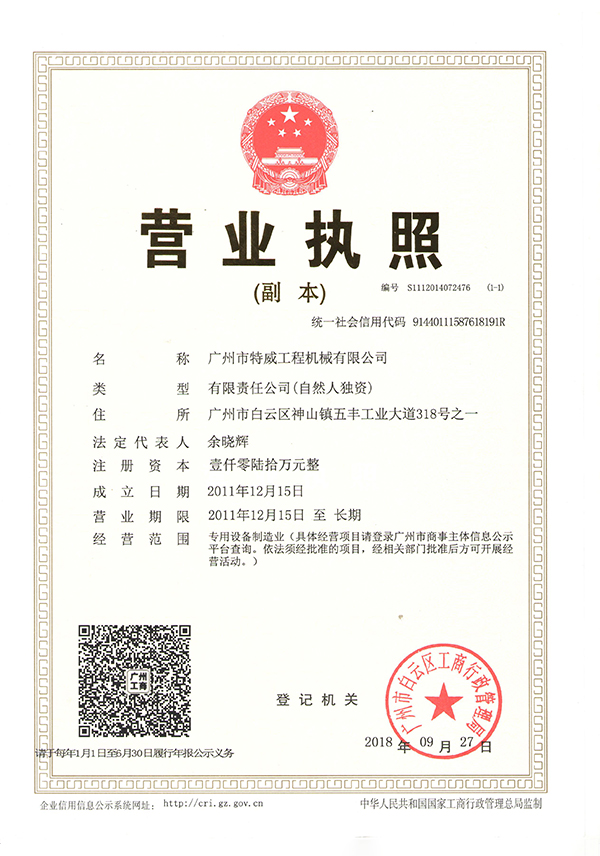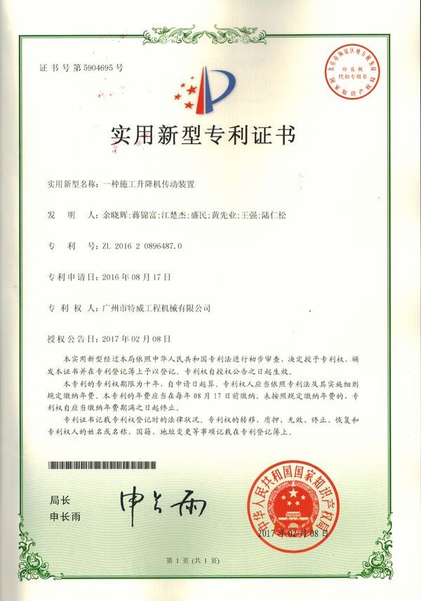 廣州市特威工程機(jī)械有限公司地處廣州市白云區(qū)神山鎮(zhèn),廣清高速神山出口附近,是一家施工升降機(jī)的專業(yè)生產(chǎn)廠家。公司成立于2011年,占地100000多平方米,注冊資金1060萬元,現(xiàn)有員工300余人其中工程技術(shù)人員33人,高級技術(shù)人員52人。